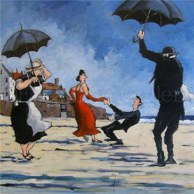 EliminarEl video no solo tiene una aproximación a la imagen del baile bajo paraguas de Vettriano, la aparición de los músicos está copiada de otro de los cuadros del escocés.